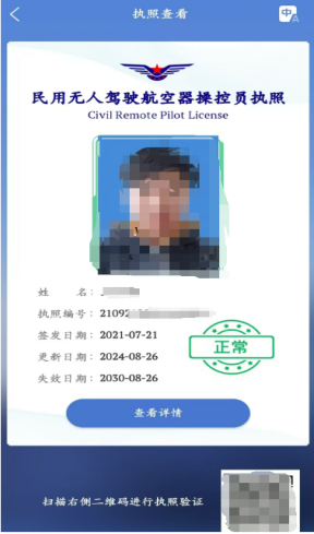 适用范围:适用于商业航拍、影视制作、农业植保、环境监测等多个行业领域。持有者可在中国境内合法从事无人机飞行工作,并可以申报空域、申请航线。