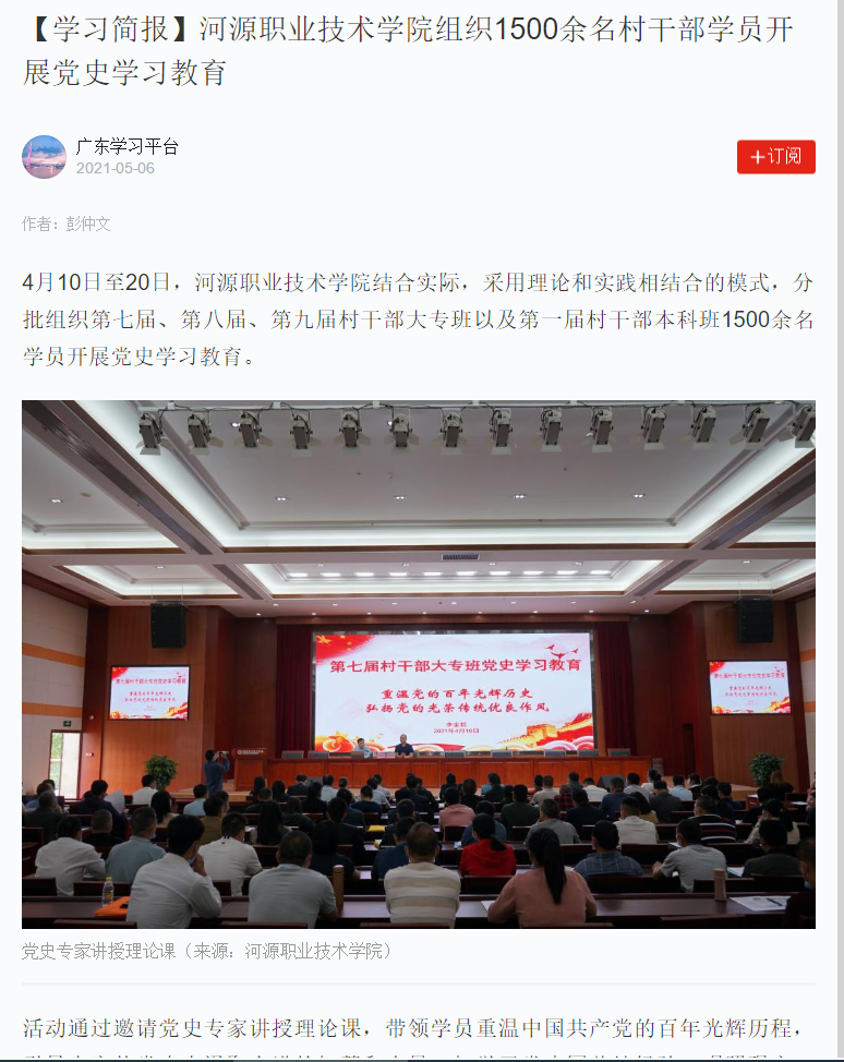 5月6日,《学习强国》专题报道我校继续教育学院面向村干部班开展党史学习教育情况。这是继4月22日《学习强国》对我校面向“圆梦计划”学员开展党史学习教育专题报道后第二次报道我校继续教育学院开展党史学习教育情况。