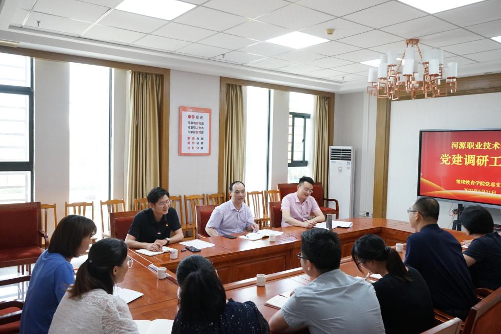 5月21日下午,赖小景副校长带领组织人事处曾广生副处长、校级党建专职组织员张标老师一行前往继续教育学院开展党建调研,继续教育学院党总支支委、专职组织员及各支部支委参加了会议。会议由曾广生副处长主持。