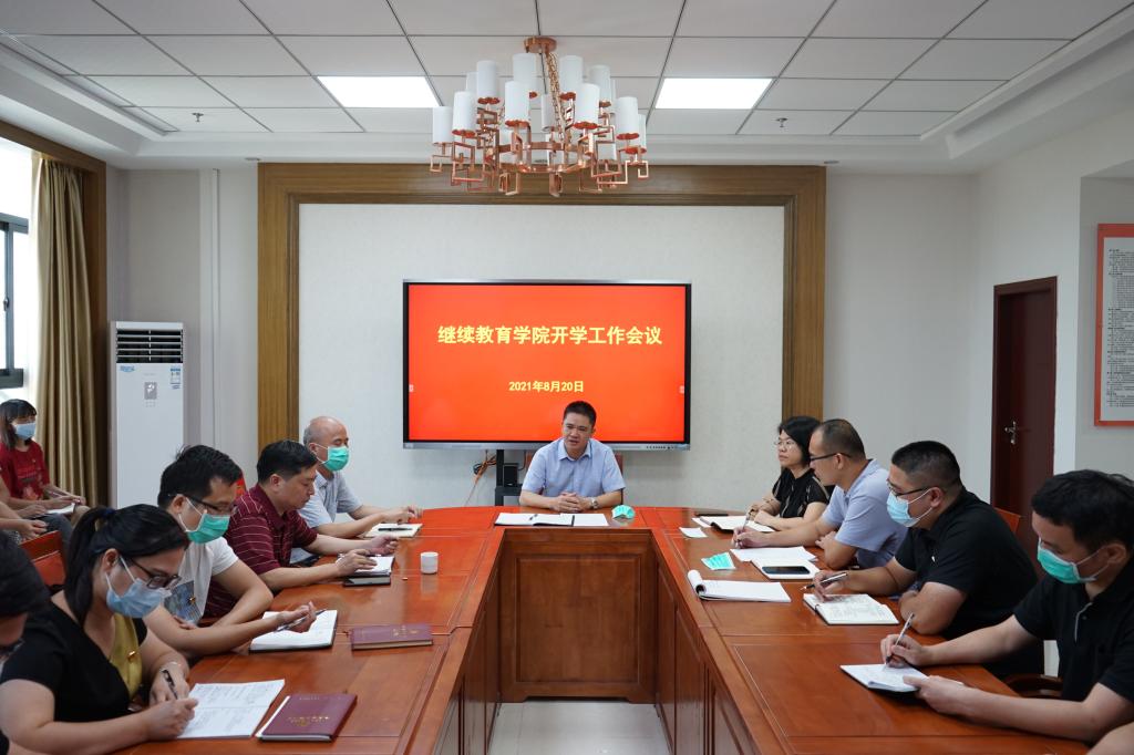 8月20日,继续教育学院召开新学期开学工作会议。李文萍院长主持会议,袁光华副校长及继续教育学院(含创新创业学院)全体人员参加会议。
