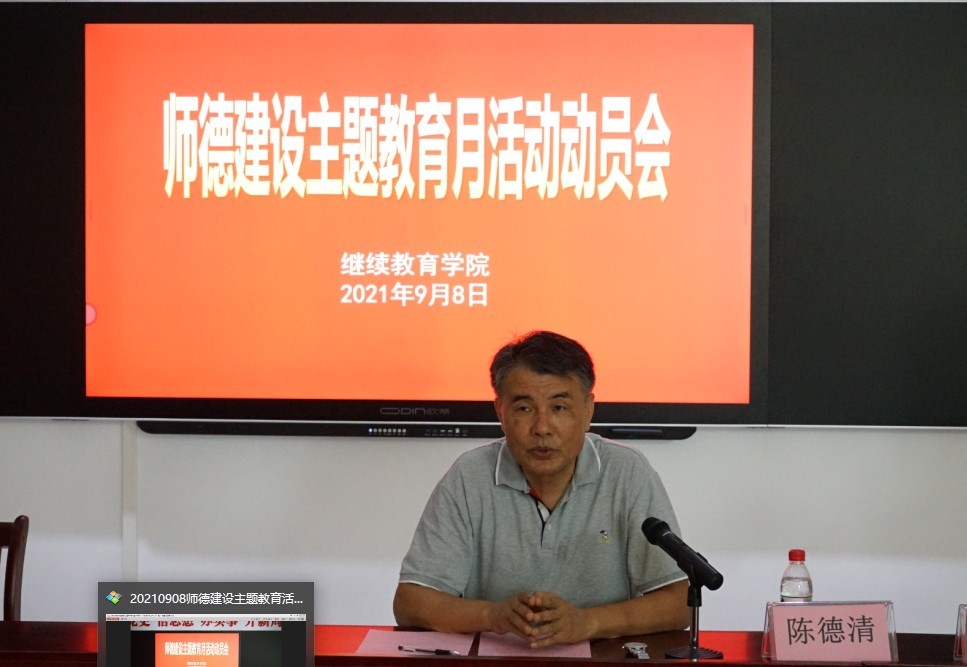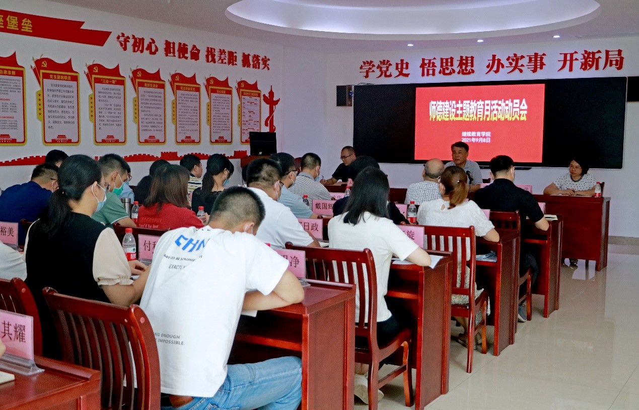 9月8日,继续教育学院召开师德建设主题教育月活动动员会。陈德清校长、袁光华副校长及继续教育学院(含创新创业学院)全体人员参加会议。继续教育学院李文萍院长主持会议。