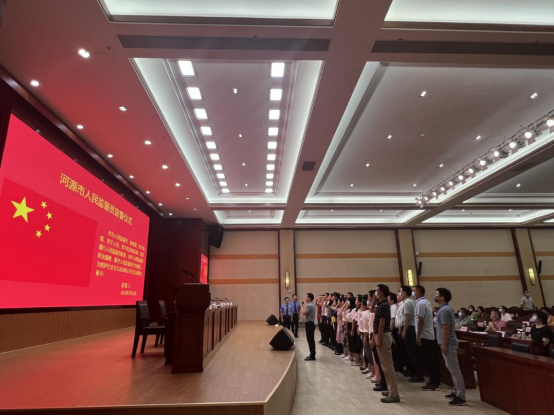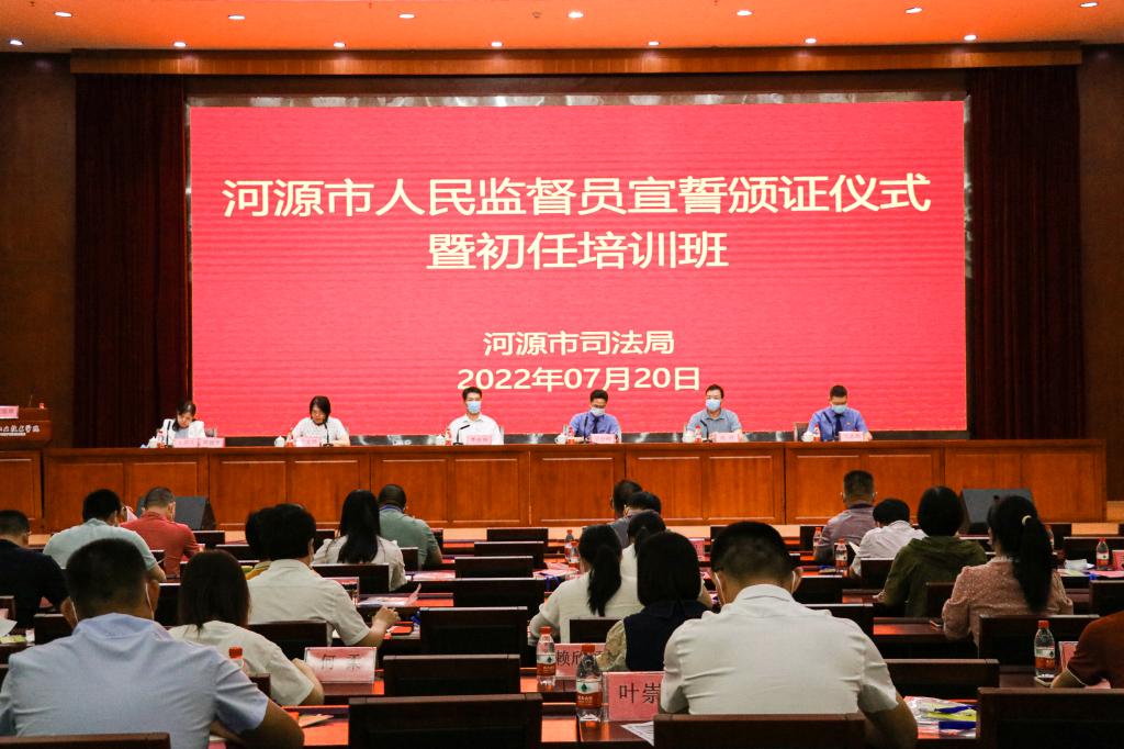 为加强我市人民监督员队伍建设,提升人民监督员依法履职能力和水平,更好地发挥人民监督员作用,7月20日,河源市司法局在我校举办2022年河源市人民监督员宣誓颁证仪式暨初任培训班。市司法局党组书记、局长李庆铎,市人民检察院党组成员、政治部主任吴宇峰,市司法局党组成员、政治处主任肖佳,河源职业技术学院继续教育学院院长李文萍出席活动。经过法定程序选任的33名新一届河源市人民检察院人民监督员,各县区司法局分管领导、相关科室人员共50余人参加了培训。