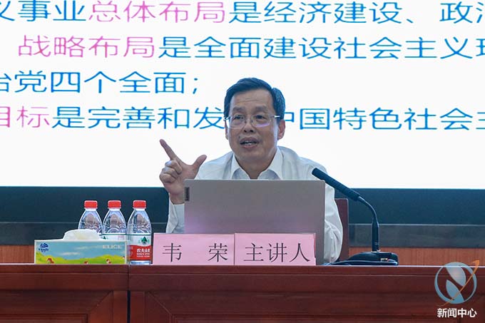 韦荣书记表示,作为基层党组织书记,学员们在政治方面要始终与党中央保持高度一致,要坚决维护习近平总书记党中央的核心、全党的核心地位,坚决维护党中央权威和集中统一领导,要努力在教育业务方面成为优秀的教育家。他结合自身学习与研究,从明确党的二十大主题和重大意义,高举中国特色社会主义伟大旗帜、全面贯彻新时代中国特色社会主义思想等六个方面对党的二十大精神进行了深度解读。韦荣书记表示,党用伟大奋斗创造了百年伟业,也定能用新的伟大奋斗创造新的伟业,全党全军全国各族人民要紧密团结在党中央周围,作为基层工作者更要牢记空谈误国、实干兴邦,坚定信心、同心同德,埋头苦干、奋勇前进,为全面建设社会主义现代化国家、全面推进中华民族伟大复兴而团结奋斗。
