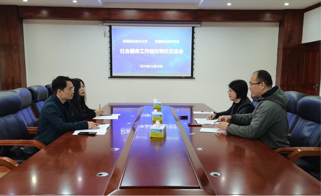 为深入落实“职业教育结对帮扶行动计划”,11月30日,深圳职业技术大学继续教育与培训学院(以下简称“深职大继培学院”)黄志坚院长一行到访我校进行业务交流,我校继续教育学院李文萍院长在行政楼第二会议室接待了来访人员,并与对方进行深入交流。