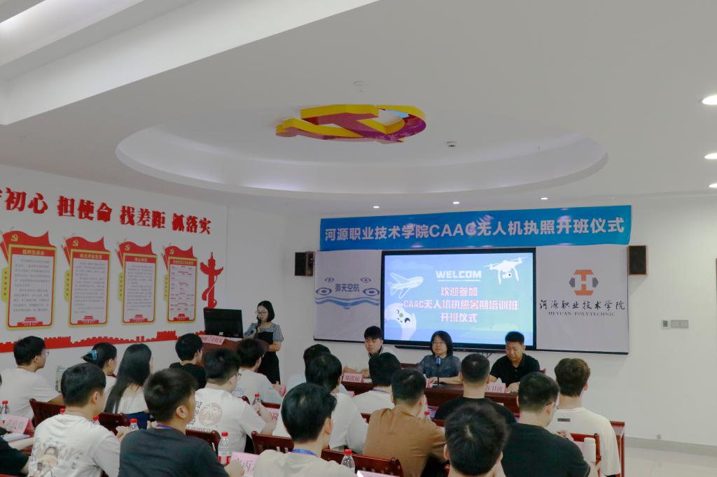 7月11日,河源职业技术学院2025年CAAC无人机执照培训暑期班正式开班。我校继续教育学院院长与深圳御天空航无人机有限公司相关负责人及教师代表、参训学员齐聚一堂,共同见证这一重要时刻。