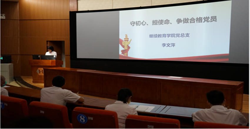 6月7日,继续教育学院党总支召开党员大会,党总支负责人李文萍同志为党员同志作“守初心、担使命、争做合格党员”主题党课,继教院全体党员参加学习。